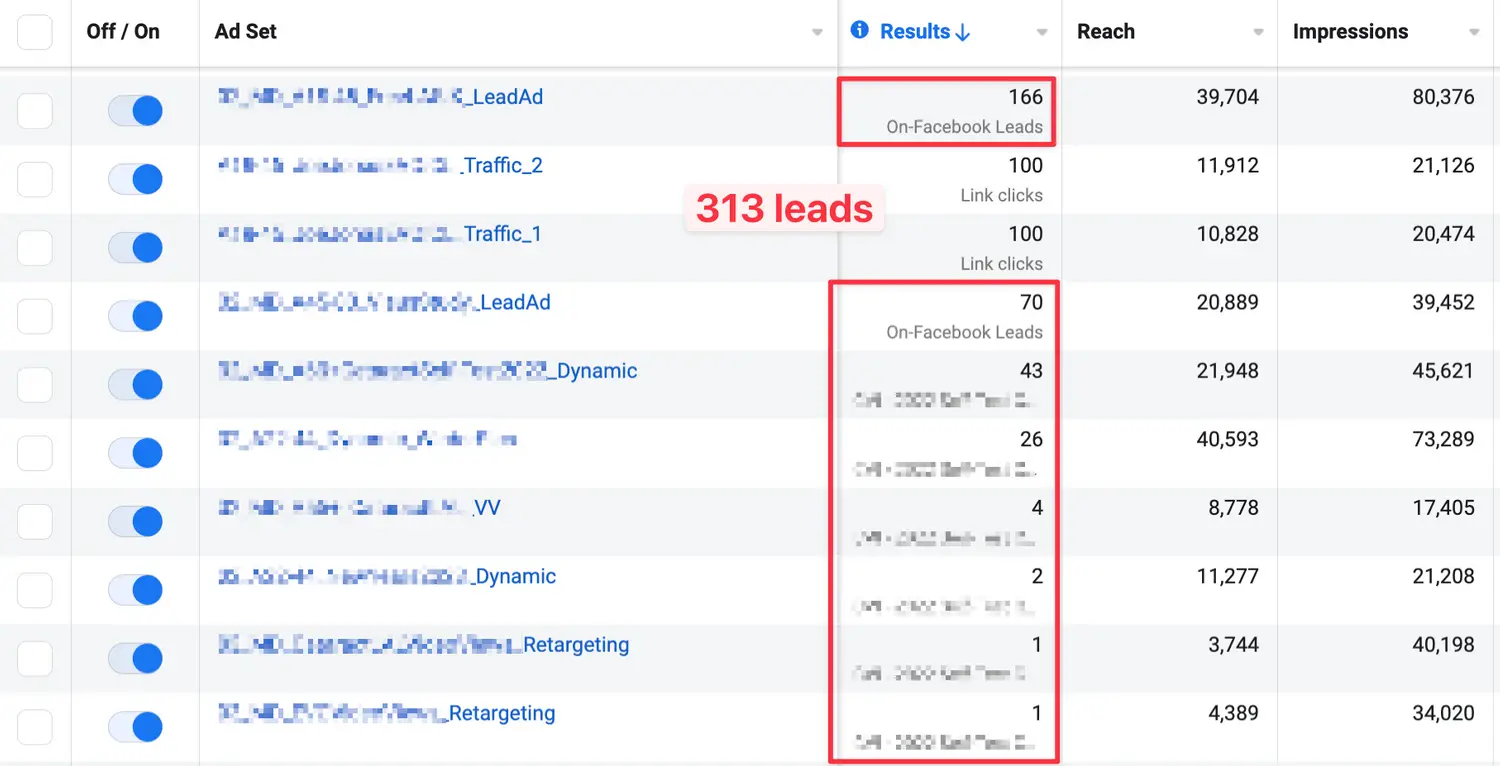 313 leads in 30 days